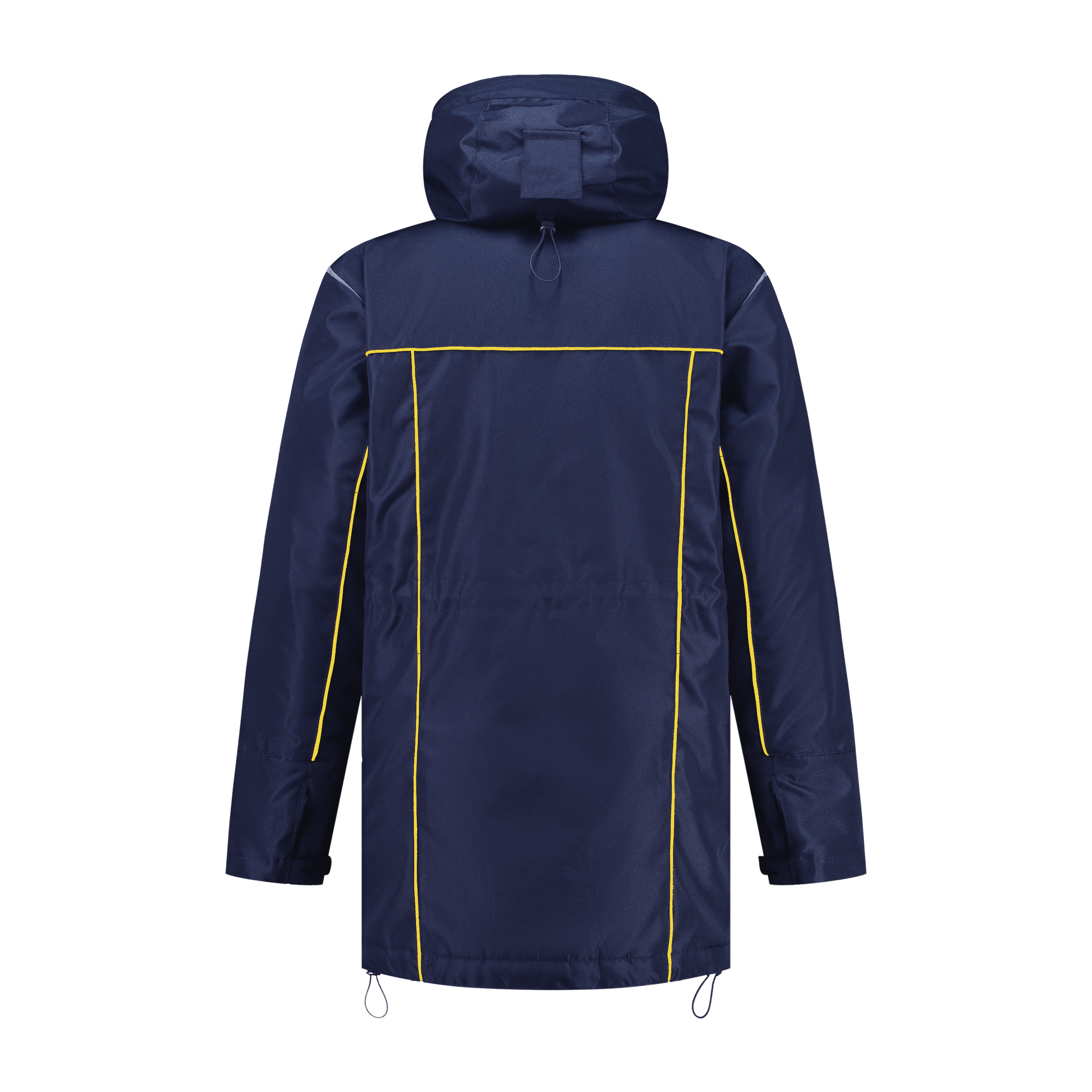 Winter werkjas blauw met kleuraccent geel- voor professionals warm, waterdicht en herkenbaar