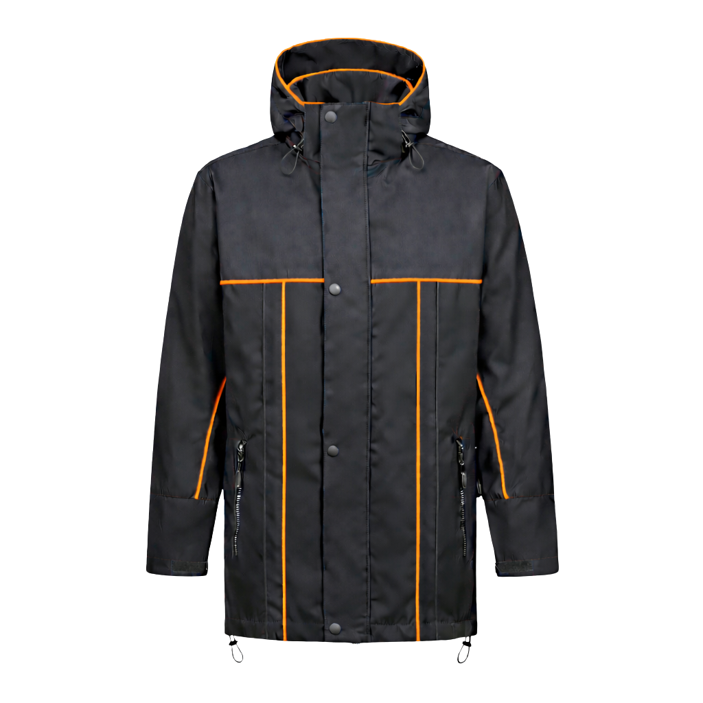 Winter werkjas zwart met kleuraccent oranje- voor professionals warm, waterdicht en herkenbaar